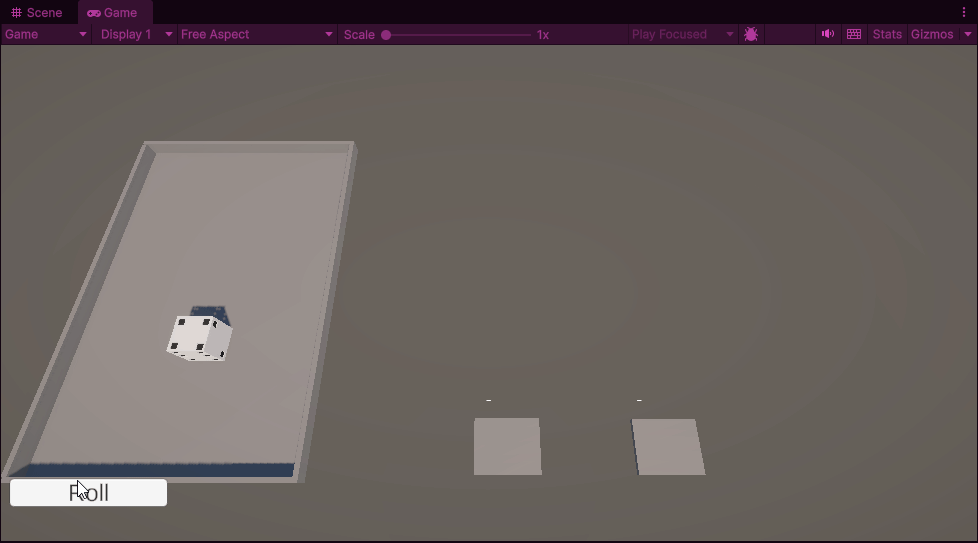I did build the tray, a die that knows which side is up, in addition to some logic to roll it. The die can also snap to certain positions. Next steps would be duplicating the slot prefab, and turn them into a customer prefab with a timer.